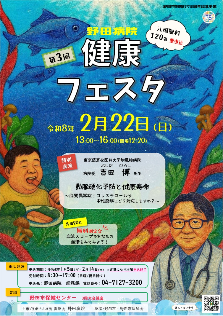 (受付はR8.1.5より)R8年2月22日 第3回野田病院健康フェスタ開催のお知らせ