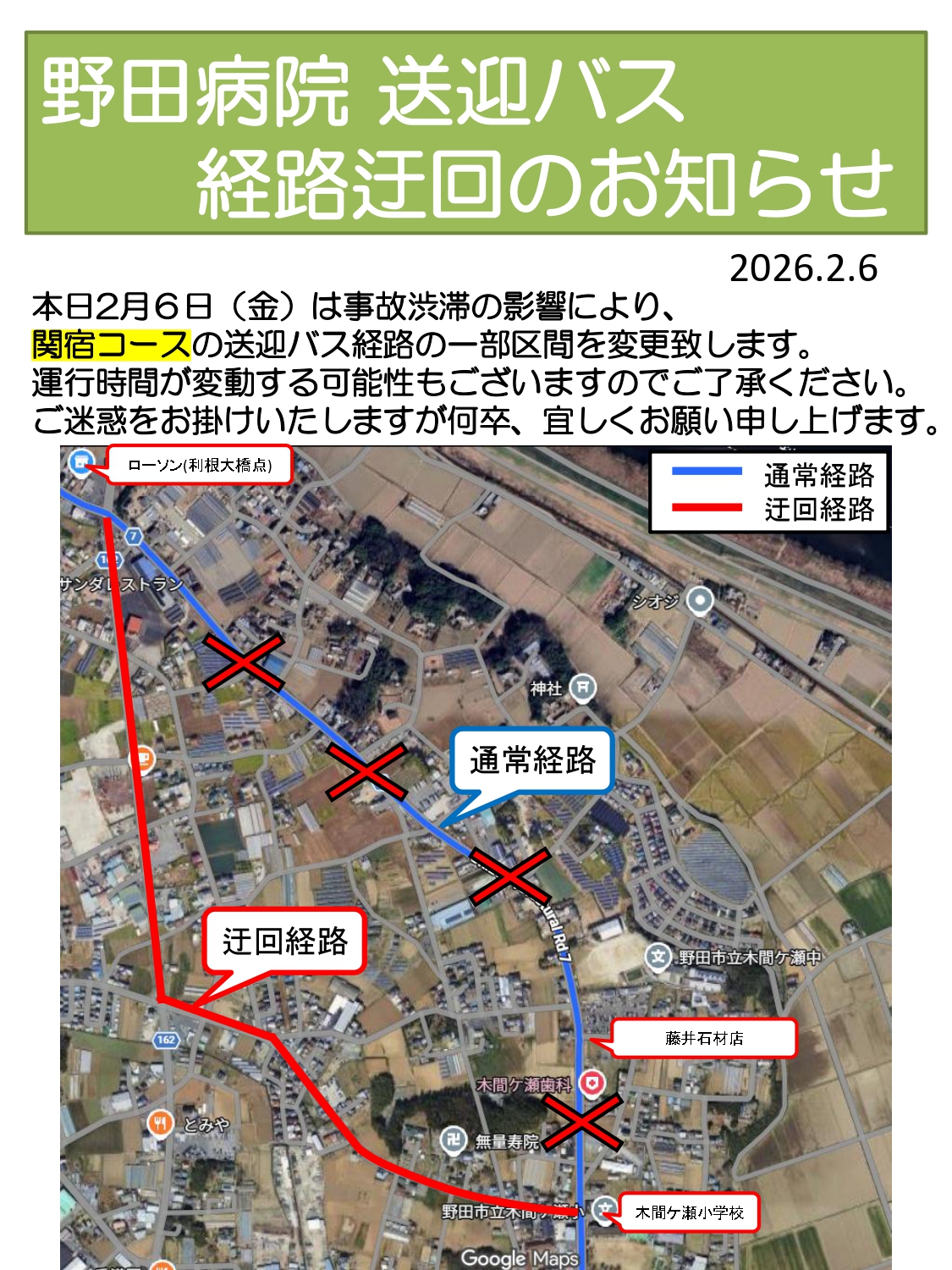 2月6日 送迎バスに関するお知らせ